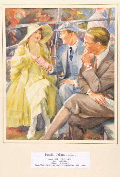 Zwei junge Männer bemühen sich um eine elegante Dame
