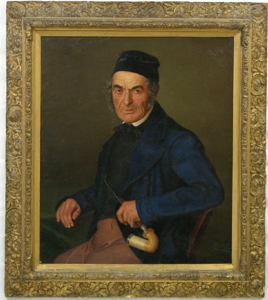 | A beautifully painted mid-19th Century portrait of a distinguished gentleman holding a pipe | |