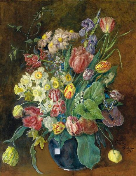 Prachtvoller bunter Blütenstrauß in altmeisterlicher Manier.