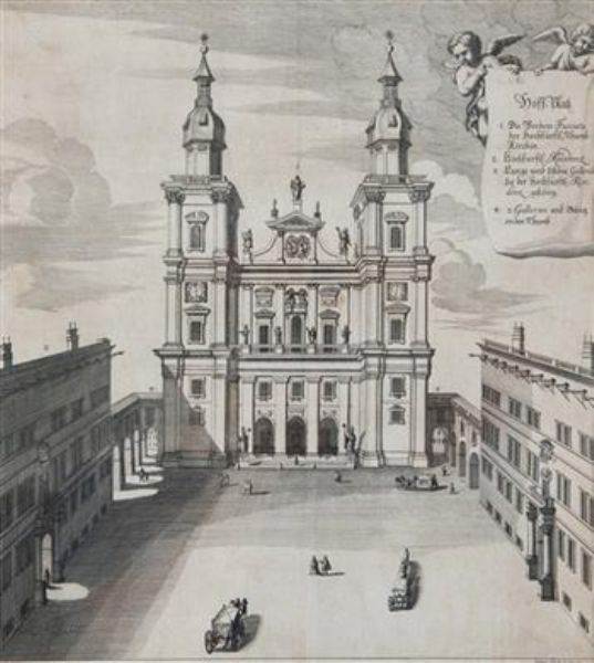 Salzburg - Domplatz mit drei Kutschen" bezeichnet "Hoff-Platz