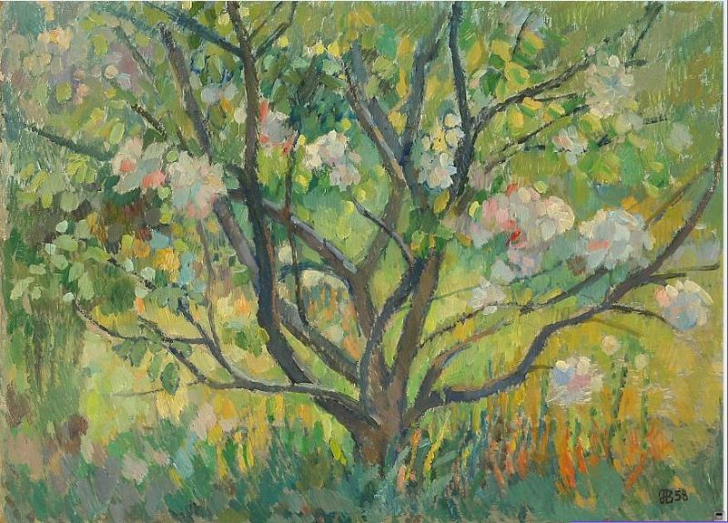 Blomstrende æbletræ i en have ved Nørrerød. Viborg