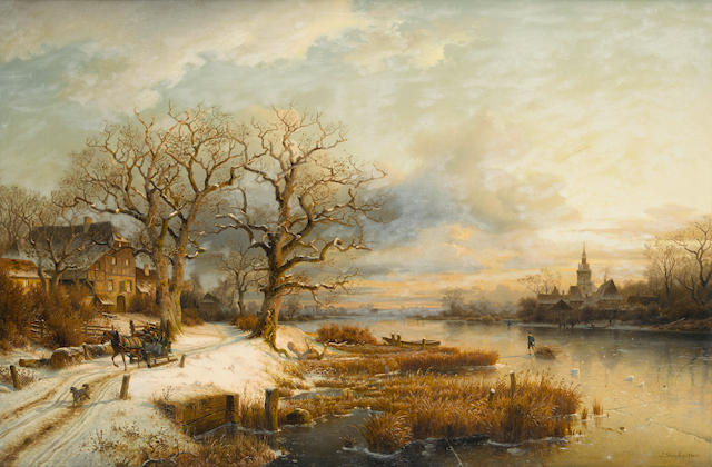 A winter landscape with frozen river