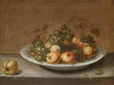 A still life of fruit in a wide bowl