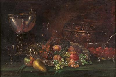 Still Life with Nautilus Cup, glasses, vessel and autumn fruits