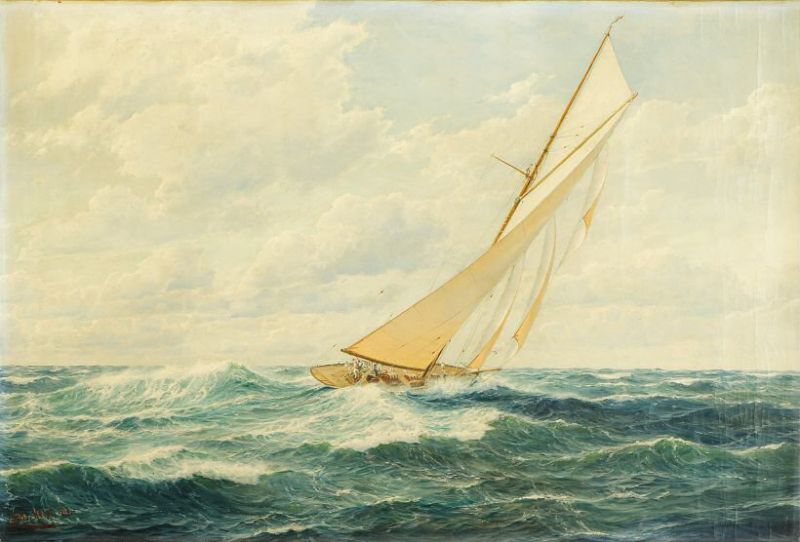 | Die kaiserliche Segelyacht "Meteor" vor dem Wind auf hoher See | |