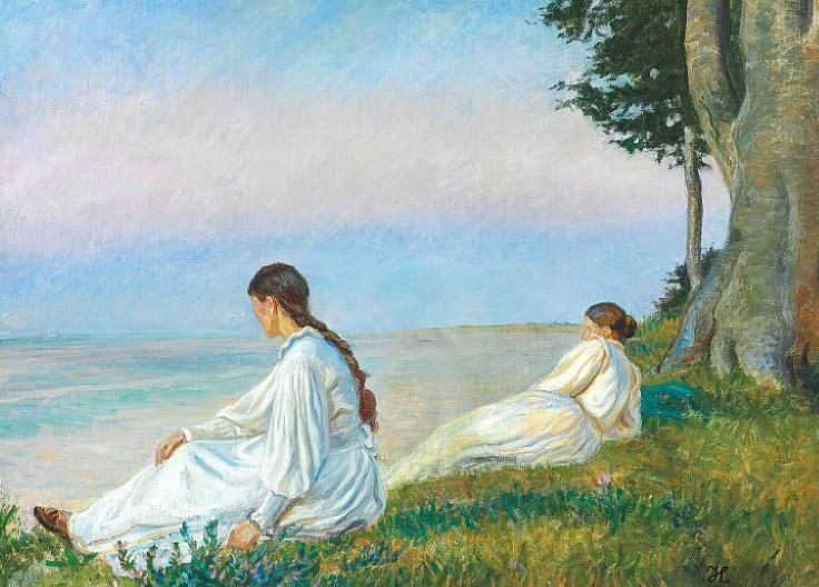 | Two girls looking over the sea. The painter's fiancé Alhed and his sister Christine. (4). | |