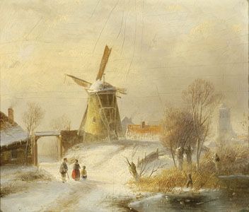 | Figuren bij een molen in een winters landschap | |