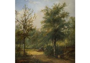 LAUBWALDSTÜCK MIT FIGURENSTAFFAGE