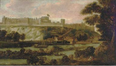 | A view of Windsor Castle with boats on the River Thames | |