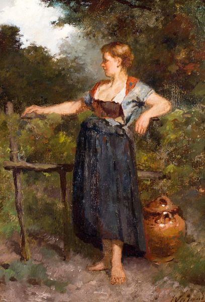 Jonge boerenvrouw met kruik