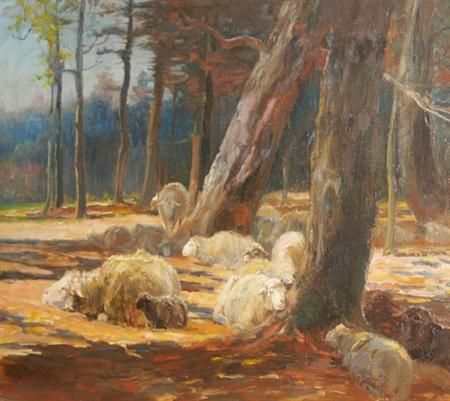 Sheep at Rest at the Edge of a Wood