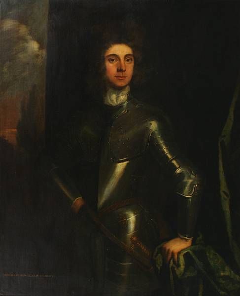 | Portrait of a gentleman, said to be Sir John Sinclair, 4th Bart, standing three-quarter length, wearing armour, a landscape beyo | |