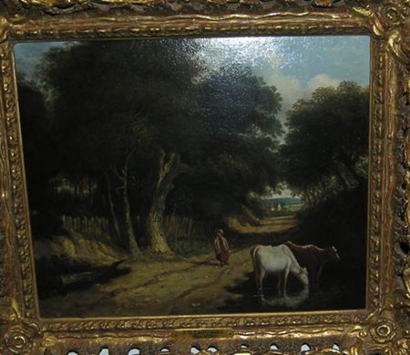 Drover Watering the Cattle along a Wooded Lane