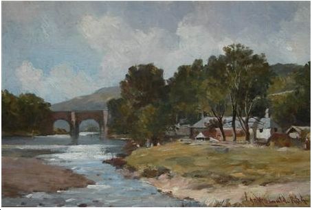 A QUIET RIVER SCENE, WITH A BRIDGE