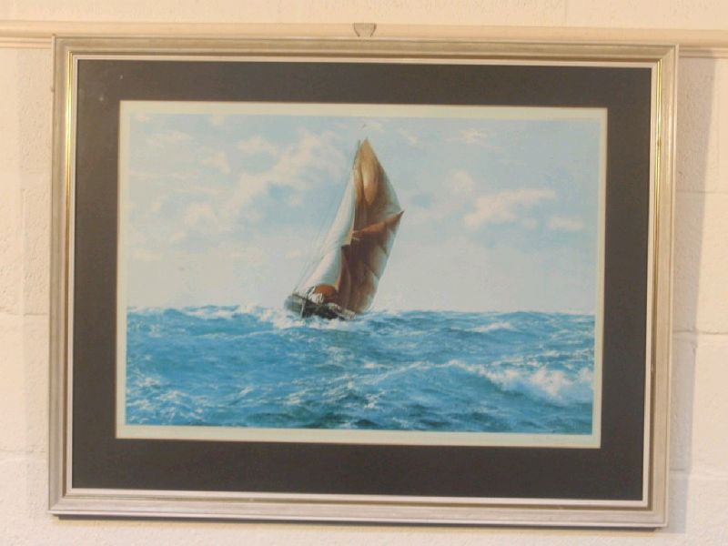 Fishing boat in full sail in choppy seas