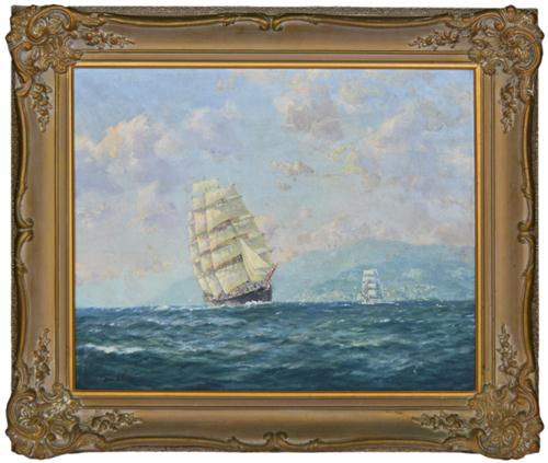 Untitled (Tall Ships along coastline)