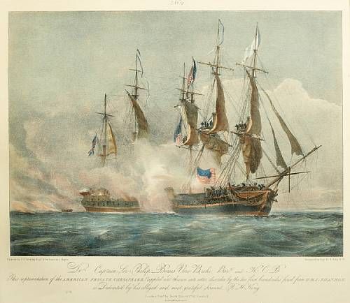 | To Captain Sir Philip Vere Broke Bart and KCB, a set of four prints depicting the battle between the H.M.S. Shannon and the U.S. | |