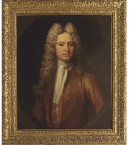 | Portrait of a Gentleman, half-length, in a brown coat and waistcoat and a white stock, feigned oval | |