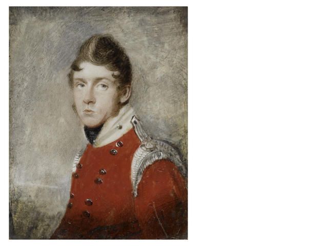 | Lieutenant William Swiny of the 6th Regiment of the Light Company, wearing scarlet coat with pale yellow standing collar and sil | |