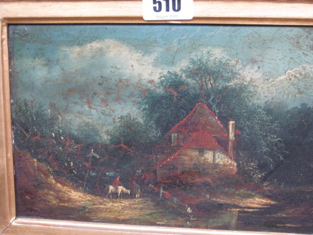 Cottage scene, moonlit river scene