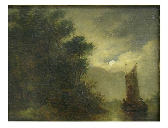sailing vessel on moonlit river