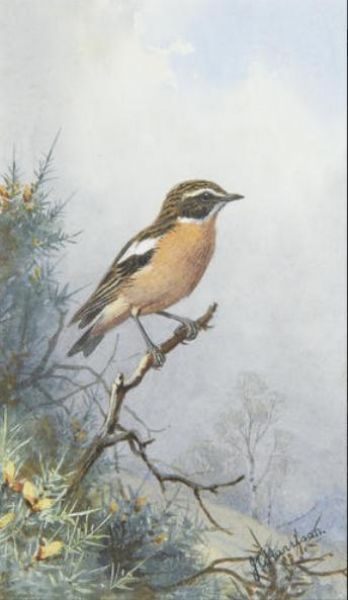 A Wheatear on a bank; A Whinchat on a branch; A Red Backed Shrike with a wasp, a set of three