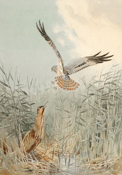 Montaqu's Harrier striking a Bittern