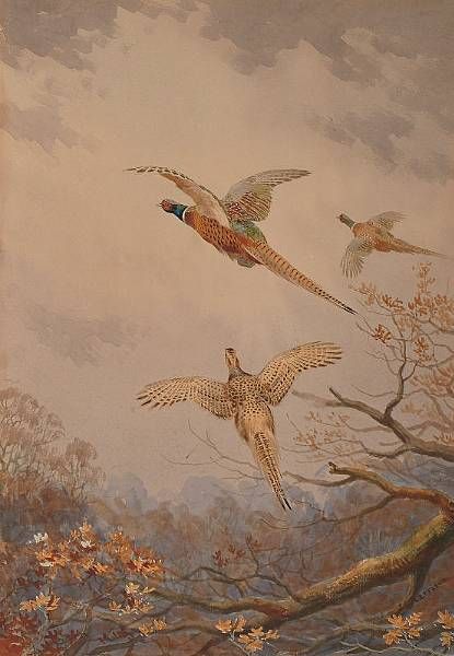 Pheasants in flight
