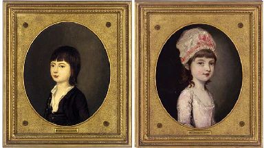 | Portrait of a boy, small bust-length, in a brown coat; and Portrait of a girl, small bust-length, in a pink dress and bonnet | |