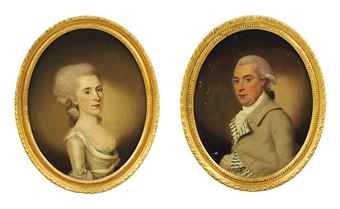 | Portrait of a gentleman, small-half-length, in a grey coat; and Portrait of a lady, small-half-length, in a white dress with a l | |