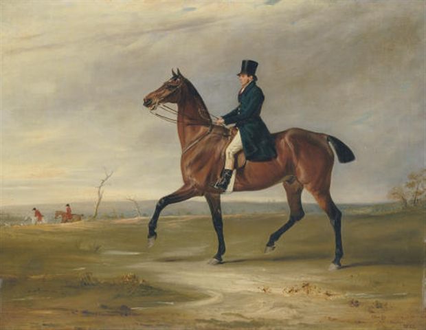 | A Gentleman, possibly Francis Holyoake, on a Bay Hunter in a Landscape, a Hunt Beyond | |