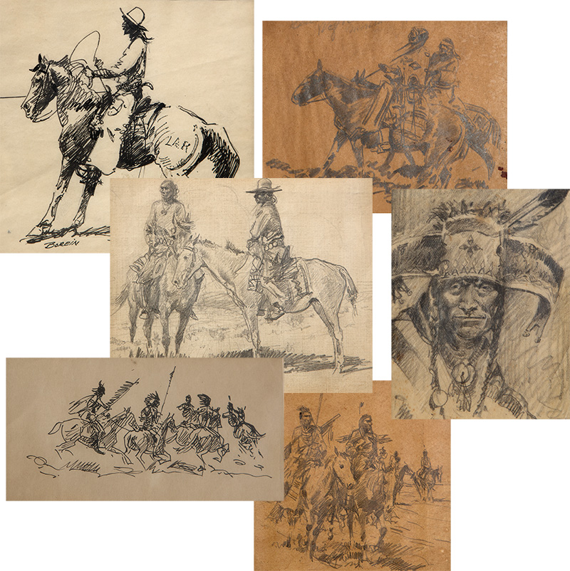 | Group of six works depicting Indians and cowboys in individual frames | |