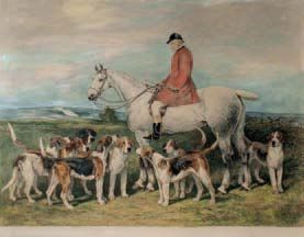 | The Hon Ralph P Nevill mounted on a grey hunter with his pack of hounds at foot | |