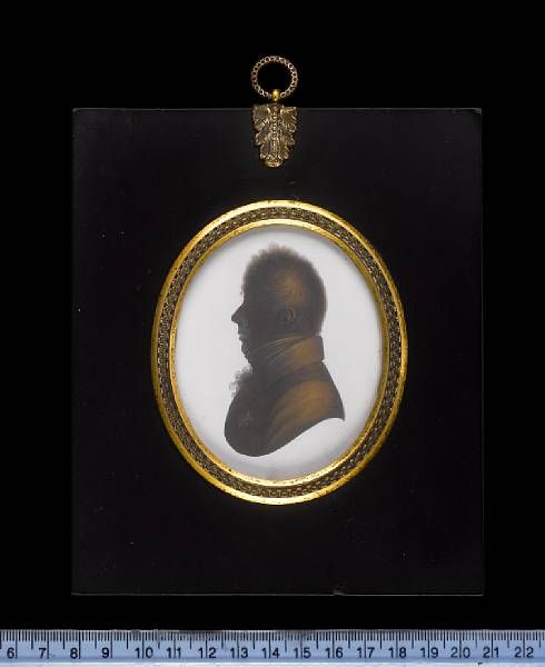 | A silhouette of George IV (1762-1830) as Prince Regent, profile to the left, wearing coat with high stock and frilled cravat, th | |
