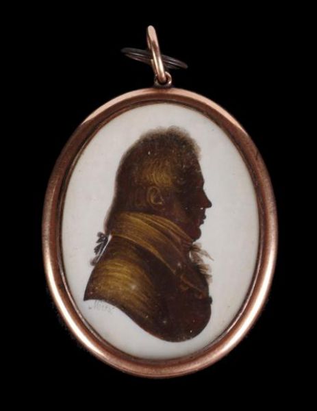 | Portrait of a gentleman in profile to the right, wearing a coat and a lace cravatte | |