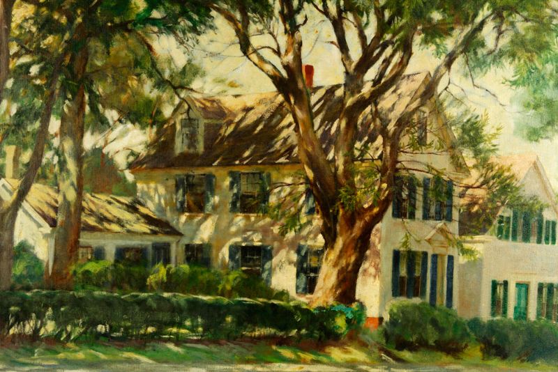 colonial home with trees