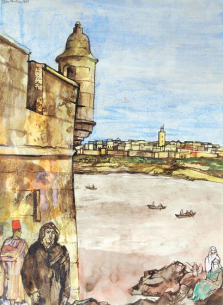 Pen ink and watercolour on paper