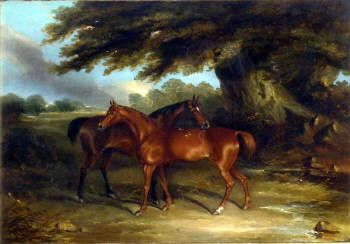 Two Chestnut Horses in a Landscape