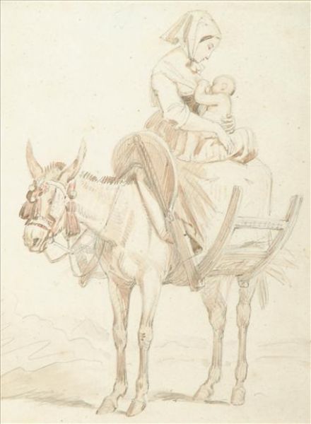 Mother and suckling child on a donkey