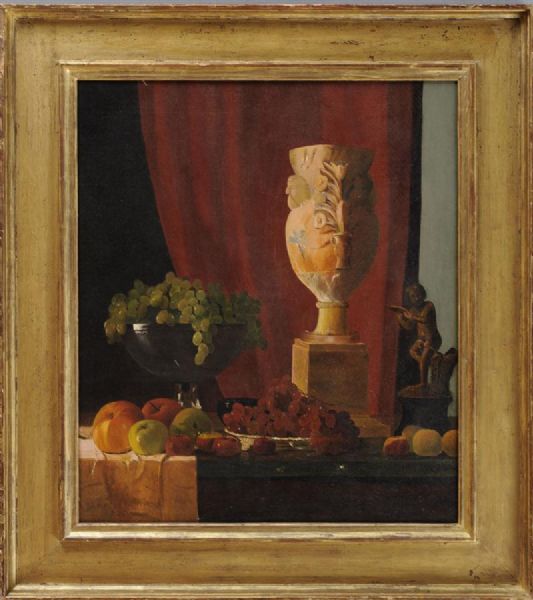 STILL LIFE WITH FRUIT, VASE AND STATUE