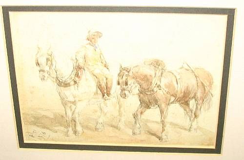 Plough boy and two horses