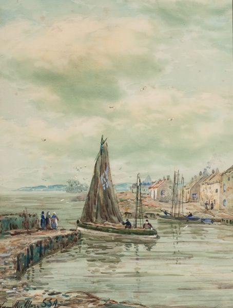 DUTCH CANAL SCENE and BOAT BY THE PIER