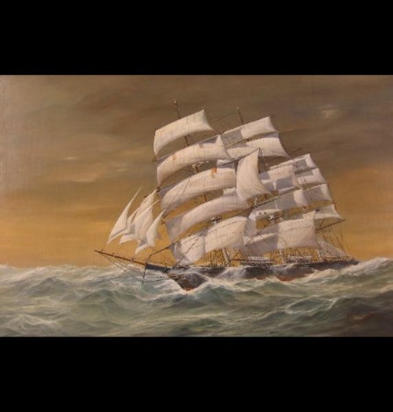 portrait of the Cutty Sark in rough seas
