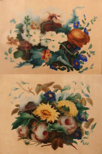 A Pair, Study of Convolvulus, Tulips, Poppies and Roses