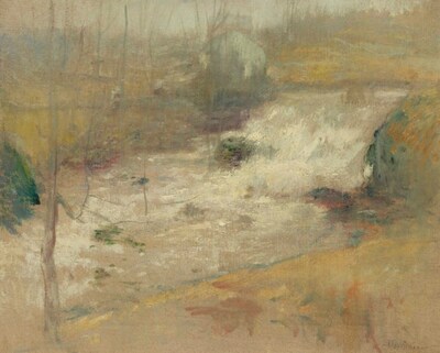 John Henry Twachtman (1853-1902) Spring Freshet signed 'J.H. Twachtman-' (lower right) oil on canvas 18 x 22¼ in. (45.7 x 56.5 cm.)