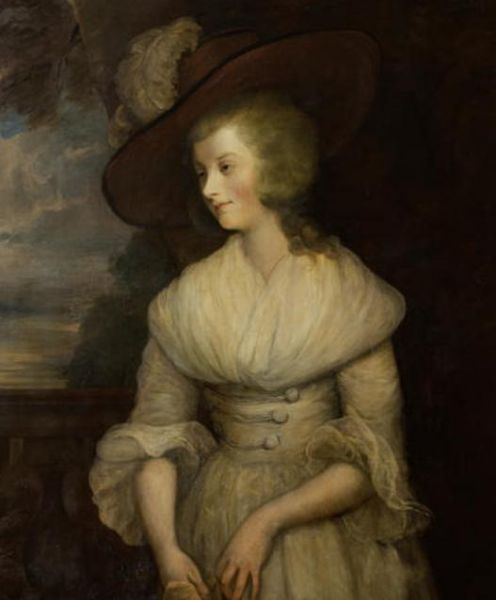| Portrait of The Hon. Mary Langdale, later Lady Stourton, three-quarter length, wearing a white dress and brown hat with plume | |