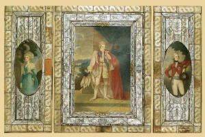 Bildnisse dreier englischer Adliger vor Landschaft. Triptychon