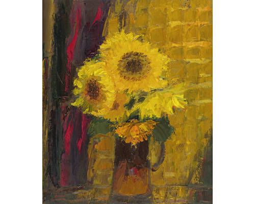Sunflowers and checked cloth