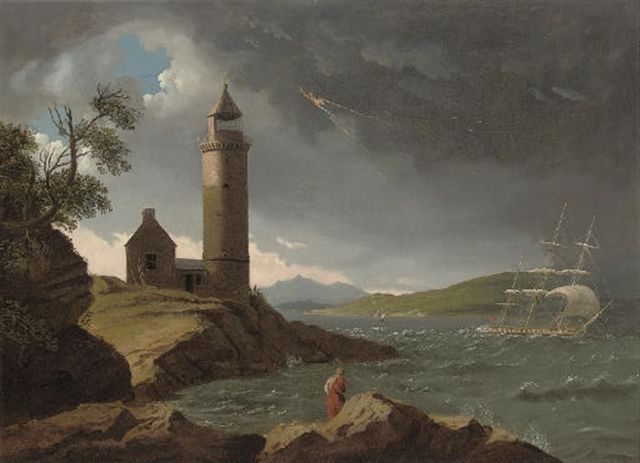 A Royal Navy frigate caught in a squall off the Cloch lighthouse