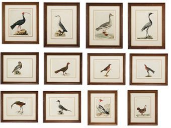 | A group of twelve watercolours of birds, including a Speckled Diver, Pintail, Cayenne Gallinule, Malmot Pheasant, Gargancy, Mage | |